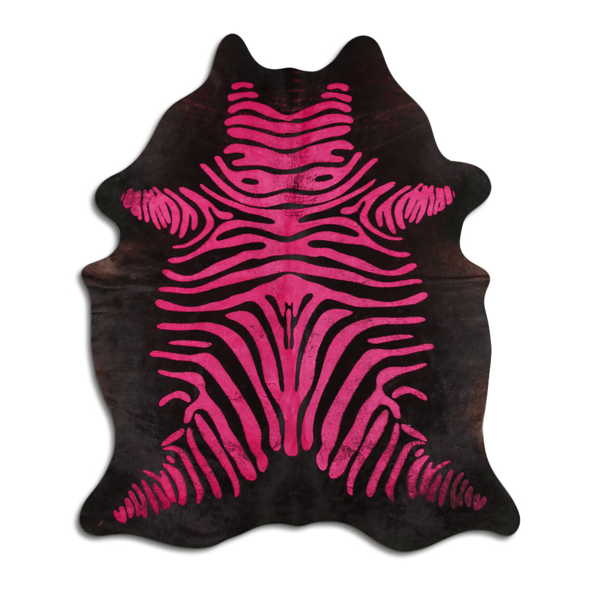 Furthermore, our commitment to ethical sourcing ensures that this exquisite rug has been produced with respect and responsibility. Elevate your living space with the Acid Washed Cowhide Area Rug in Distressed Zebra Pink on Black, where quality meets artistry in a harmonious blend.
